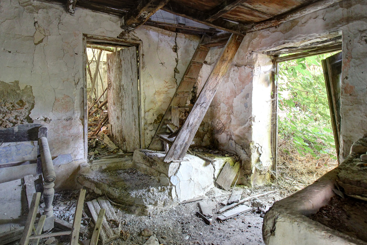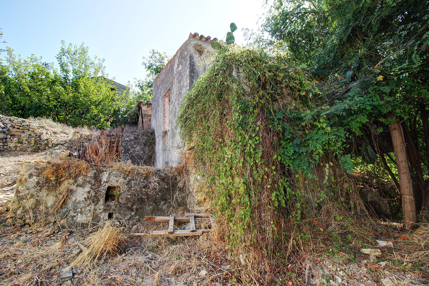 Ένα τμήμα στο κέντρο του παλαιού σπιτιού έχει καταρρεύσει και έχουν παραμείνει δύο διώροφα τμήματα συνολικού εμβαδού 129 m². Μπορείτε να επισκευάσετε τα δύο τμήματα και να χρησιμοποιήσετε το κέντρο σαν εσωτερική αυλή ή να ξαναχτίσετε το κεντρικό τμήμα ώστε να έχετε έναν ενιαίο όγκο κτηρίου, χρησιμοποιώντας τη δυνατότητα δόμησης στο οικόπεδο. Τα υπάρχοντα κτίσματα σας δίνουν τη δυνατότητα να φτιάξετε δύο όμορφες μεζονέτες που θα επικοινωνούν μέσω της αυλής ή να χωρίσετε τις κρεβατοκάμαρες από τους κύριους χώρους ώστε να κατασκευάσετε μία άνετη μονοκατοικία. Σε κάθε περίπτωση, το ακίνητο προσφέρεται για πολλές εναλλακτικές προτάσεις διαμόρφωσης και αποτελεί μία καλή επιλογή για οποιαδήποτε χρήση.