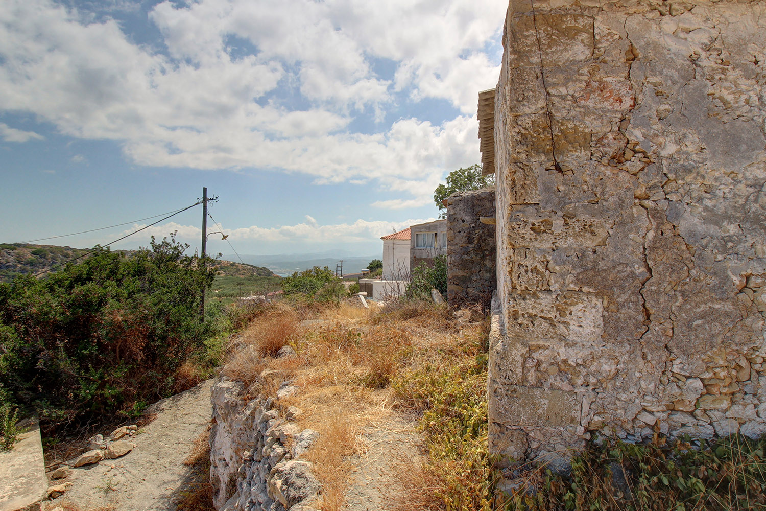 Η ιδιοκτησία βρίσκεται σε ένα γραφικό χωριουδάκι, περίπου 5 λεπτά από το παραθαλάσσιο Κολυμπάρι. Πρόκειται για παλαιό πέτρινο κτίσμα, το οποίο χρειάζεται αναπαλαίωση. Έχει πρόσβαση από ένα στενό σοκάκι ενώ υπάρχει μία μικρή πλατεία, όπου μπορείτε να αφήσετε το όχημά σας σε απόσταση περίπου 100 m.