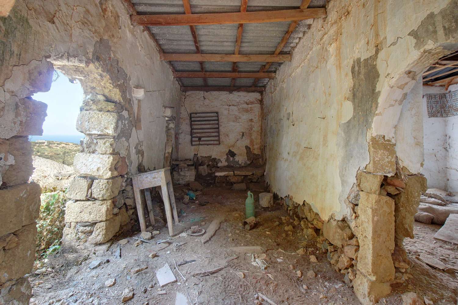 Το κτίσμα είναι δίχωρο και η διαρρύθμισή του σας επιτρέπει να φτιάξετε έναν μεγάλο ενιαίο χώρο με ένα ή δύο άνετα υπνοδωμάτια. Στην πίσω όψη υπήρχε ένα ακόμη δωμάτιο, το οποίο έχει καταρρεύσει και στη θέση του μπορείτε να φτιάξετε αυλή, να εγκαταστήσετε, ενδεχομένως, τζακούζι ή να προσθέσετε έναν μικρό κήπο. Η πρόσοψη έχει ανατολικό προσανατολισμό απευθείας προς το σοκάκι. Στη συνέχεια υπάρχει ψηλό πρανές που διασφαλίζει ανεμπόδιστη, εντυπωσιακή θέα προς τη θάλασσα και επάνω από τον κόλπο των Χανίων.