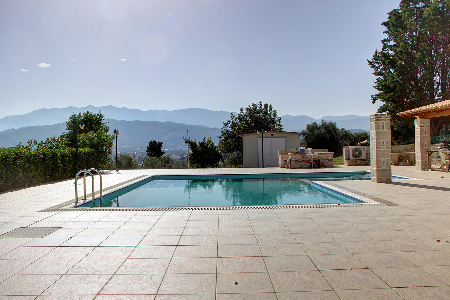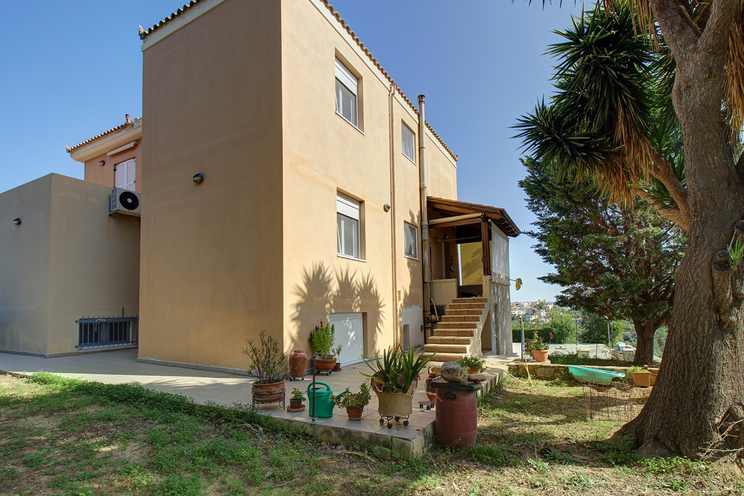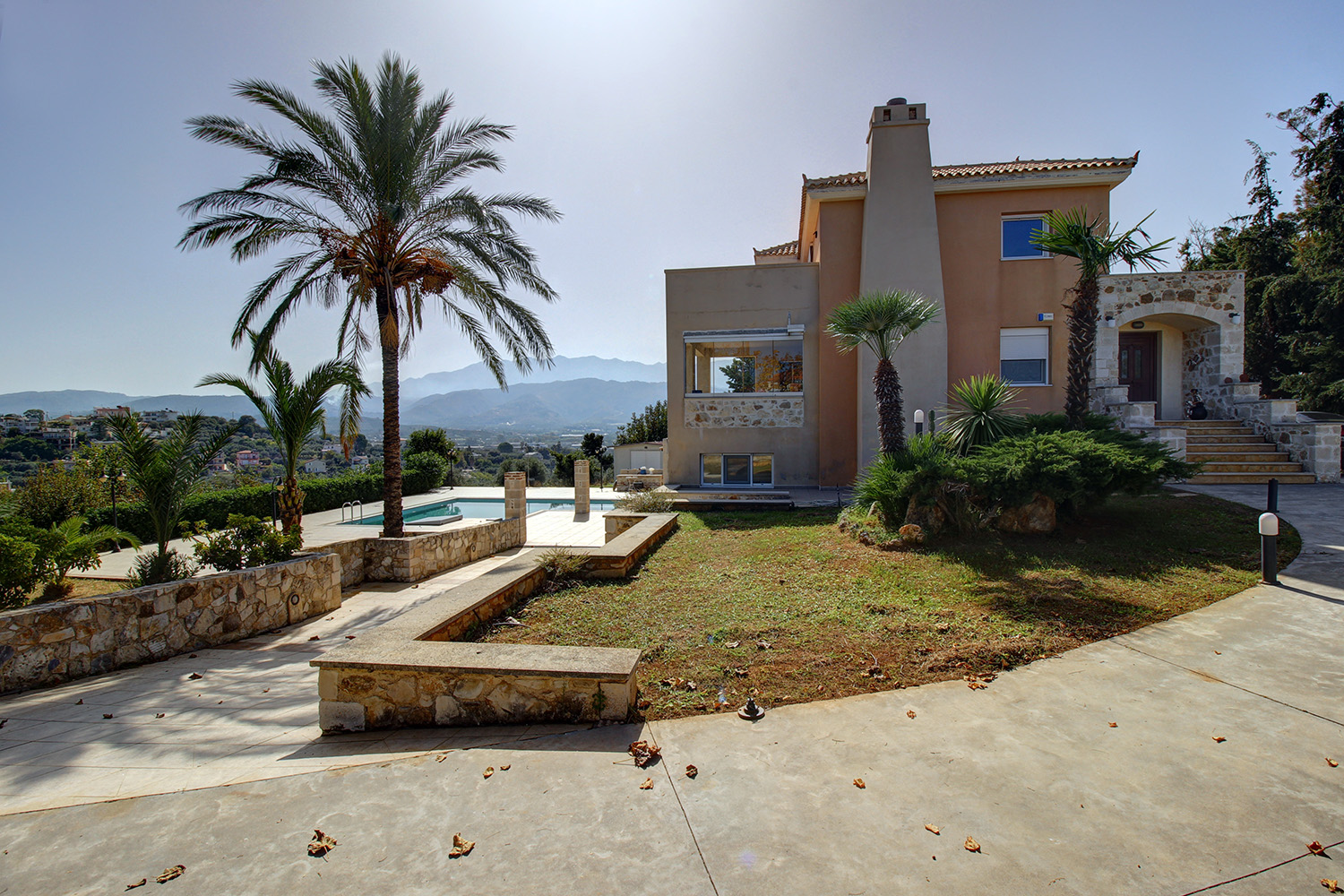 Το σπίτι έχει κτιστεί σε μία πλαγιά με ήπια ανατολική κλίση, από όπου έχει ανεμπόδιστη πανοραμική θέα στη θάλασσα, στα Λευκά Όρη και στην κατάφυτη γύρω περιοχή. Πρόκειται για μία πολυτελή βίλα με όμορφα διαμορφωμένους εξωτερικούς χώρους, η οποία αποτελείται από τρία επίπεδα, μία κύρια κατοικία 155 m² στα δύο επάνω, ένα διαμέρισμα-ξενώνα υπογείου 80 m² κάτω καθώς και επιπλέον υπόγειους βοηθητικούς χώρους 51 m². Πρόκειται για ένα αδιαμφισβήτητα πολυτελές ακίνητο και απέχει μόλις 10-15 λεπτά οδήγησης από το κέντρο της πόλης των Χανίων.