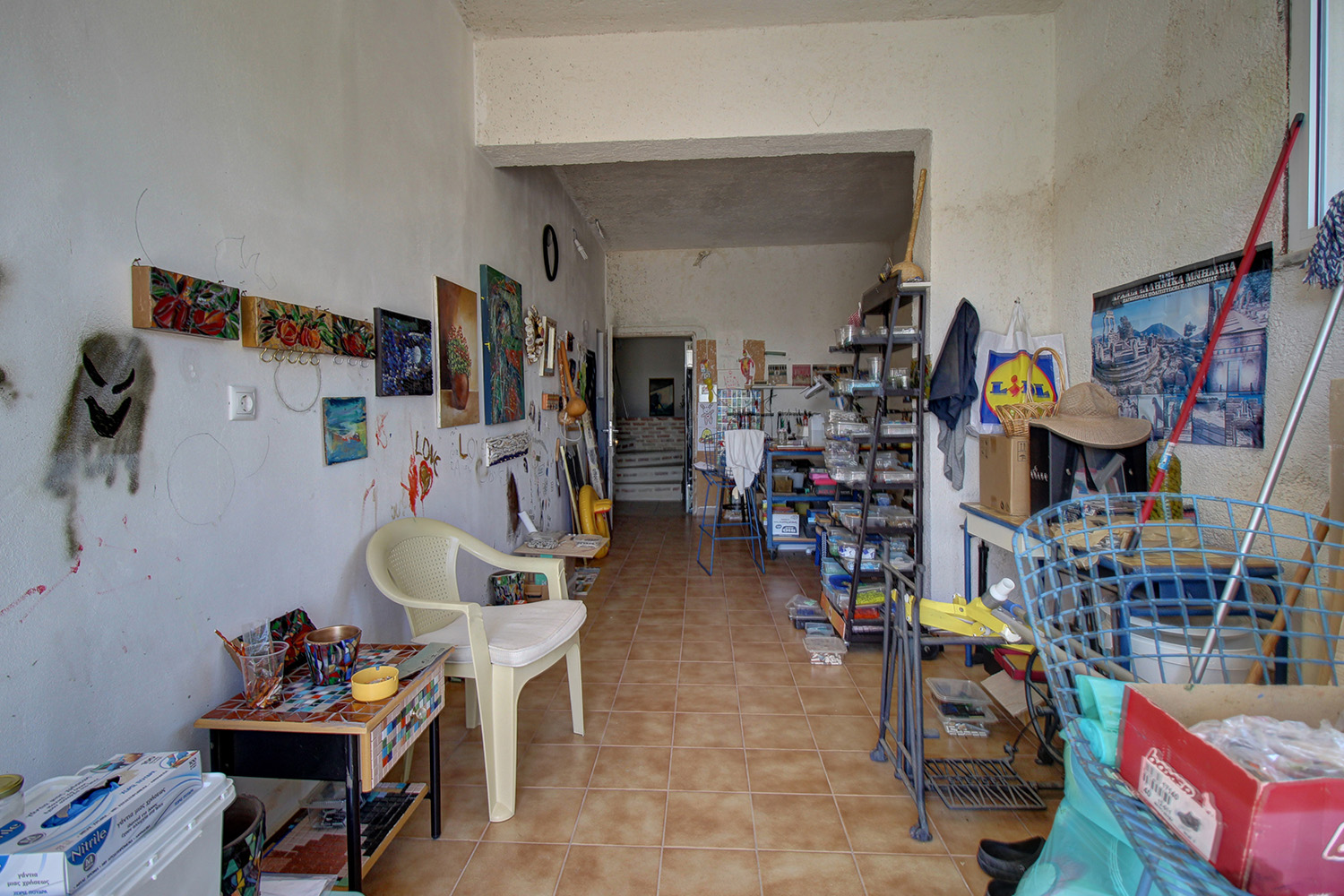 Μερικά σκαλοπάτια οδηγούν στην είσοδο της κύριας οικίας στο επίπεδο του ισογείου. Στο εσωτερικό συναντάμε έναν μεγάλο ενιαίο χώρο, όπου αυτή τη στιγμή βρίσκεται ένα άνετο σαλόνι με τζάκι και ψηλό εσωτερικό αίθριο. Η κουζίνα είναι σε δικό της χώρο και έχει αποθηκάκι με δυνατότητα χρήσης laundry room, ένα μεγάλο πάγκο, πολλά ντουλάπια και όλες τις απαραίτητες ηλεκτρικές συσκευές. Το ισόγειο περιλαμβάνει, επίσης, ένα υπνοδωμάτιο με ενσωματωμένο δικό του μπάνιο. Το σαλόνι και η κουζίνα έχουν έξοδο σε μία ανατολική στεγασμένη βεράντα, από όπου η θέα είναι εντυπωσιακή και είναι το ιδανικό σημείο για να απολαμβάνετε το γεύμα ή τον καφέ σας όλες τις ώρες της ημέρας. Μία εσωτερική σκάλα οδηγεί σε μία μεγάλη αποθήκη στο υπόγειο, η οποία είναι φωτεινή και μπορεί να διαμορφωθεί σαν γυμναστήριο, playroom ή οτιδήποτε άλλο εξυπηρετεί τις ανάγκες σας.