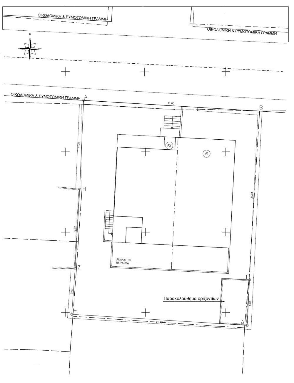 Η κατοικία είναι στη συνοικία των Δικαστηρίων, σε απόσταση μόλις 300 m από την ομώνυμη κεντρική πλατεία και ελάχιστα βήματα από το κέντρο της πόλης. Πρόκειται για μία μεζονέτα δύο επιπέδων με ένα υπόγειο 87 m² και ένα ισόγειο 81 m². Η κατοικία έχει κατασκευαστεί σε ένα οικόπεδο 581 m², όπου έχει γίνει σύσταση οριζόντιων ιδιοκτησιών και το μισό είναι στη χρήση της. Στο οικόπεδο υπάρχει κοινόχρηστη αποθήκη καθώς και αρκετός χώρος για έναν άνετο κήπο και ιδιωτικό χώρο στάθμευσης. Το οικόπεδο οικοδομείται με συντελεστή 1, μέγιστο ποσοστό κάλυψης 40% και μέγιστο επιτρεπόμενο ύψος κτηρίου ως και 17 m.