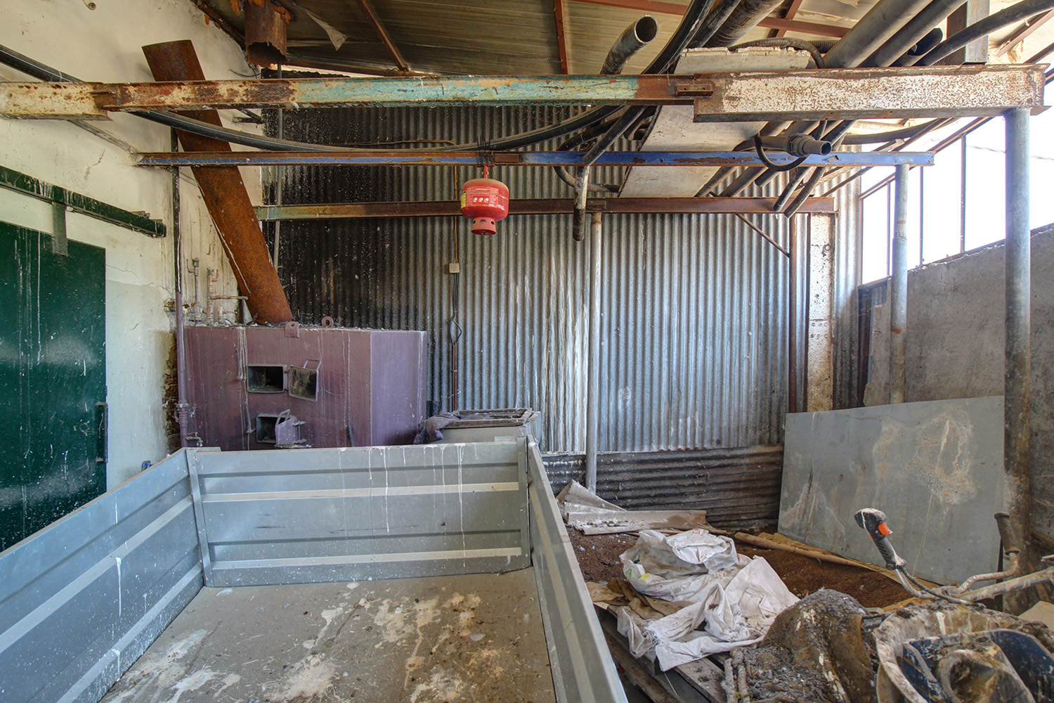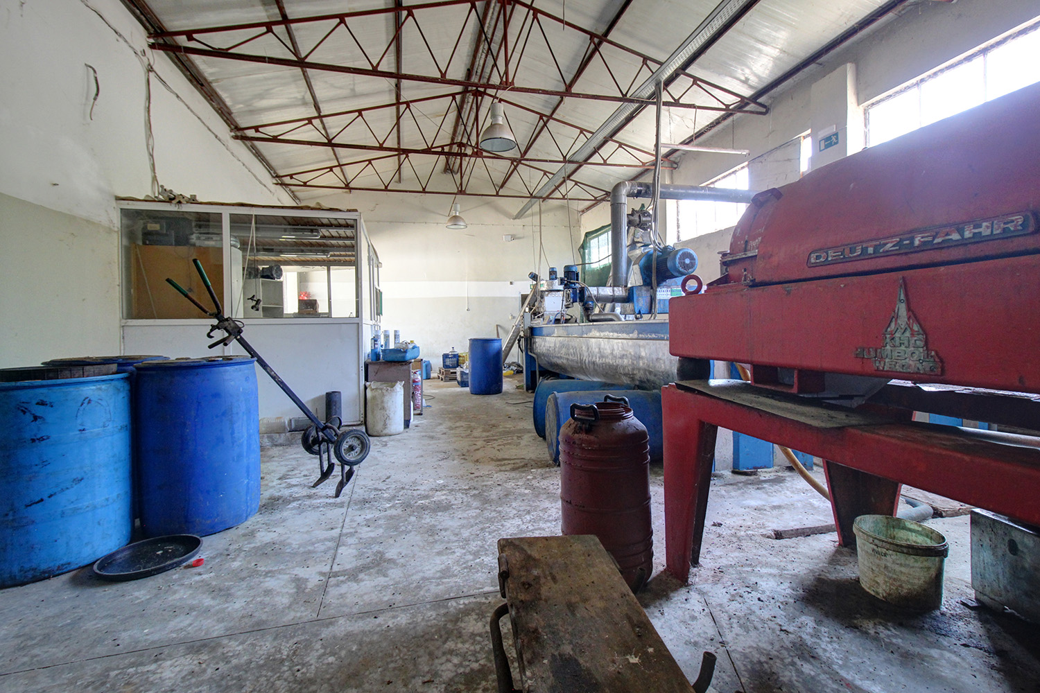 Το εσωτερικό του κτηρίου είναι ενιαίο και υπάρχει αφαιρούμενος διαχωρισμός στο γραφείο ενώ έχει κατασκευαστεί και WC. Στην πρόσοψη του κτηρίου υπάρχει μεγάλο υπόστεγο για φορτοεκφόρτωση ή στάθμευση. Το κτήριο θα μπορούσε να αγοραστεί και για οποιαδήποτε άλλη χρήση καθώς μπορεί να στεγάσει μία μικρή βιοτεχνία, μία αποθήκη ή ακόμα και να τροποποιηθεί σε μία ιδιαίτερη, βιομηχανικού στυλ κατοικία. Το σύνολο του εξοπλισμού αποτιμάται στις € 43,000 Μεταξύ άλλων περιλαμβάνει 2 δεξαμενές, ένα διαχωριστήρα που είναι ολοκαίνουριος και δεν έχει λειτουργήσει καθόλου, ένα ντεκαπέρ, 4 μαλακτήρες και άλλα. Σε μόλις 2 km υπάρχει κόμβος της εθνικής οδού Χανίων-Κισσάμου, από όπου μπορείτε να μεταβείτε στο κέντρο της πόλης των Χανίων σε περίπου 20 λεπτά.