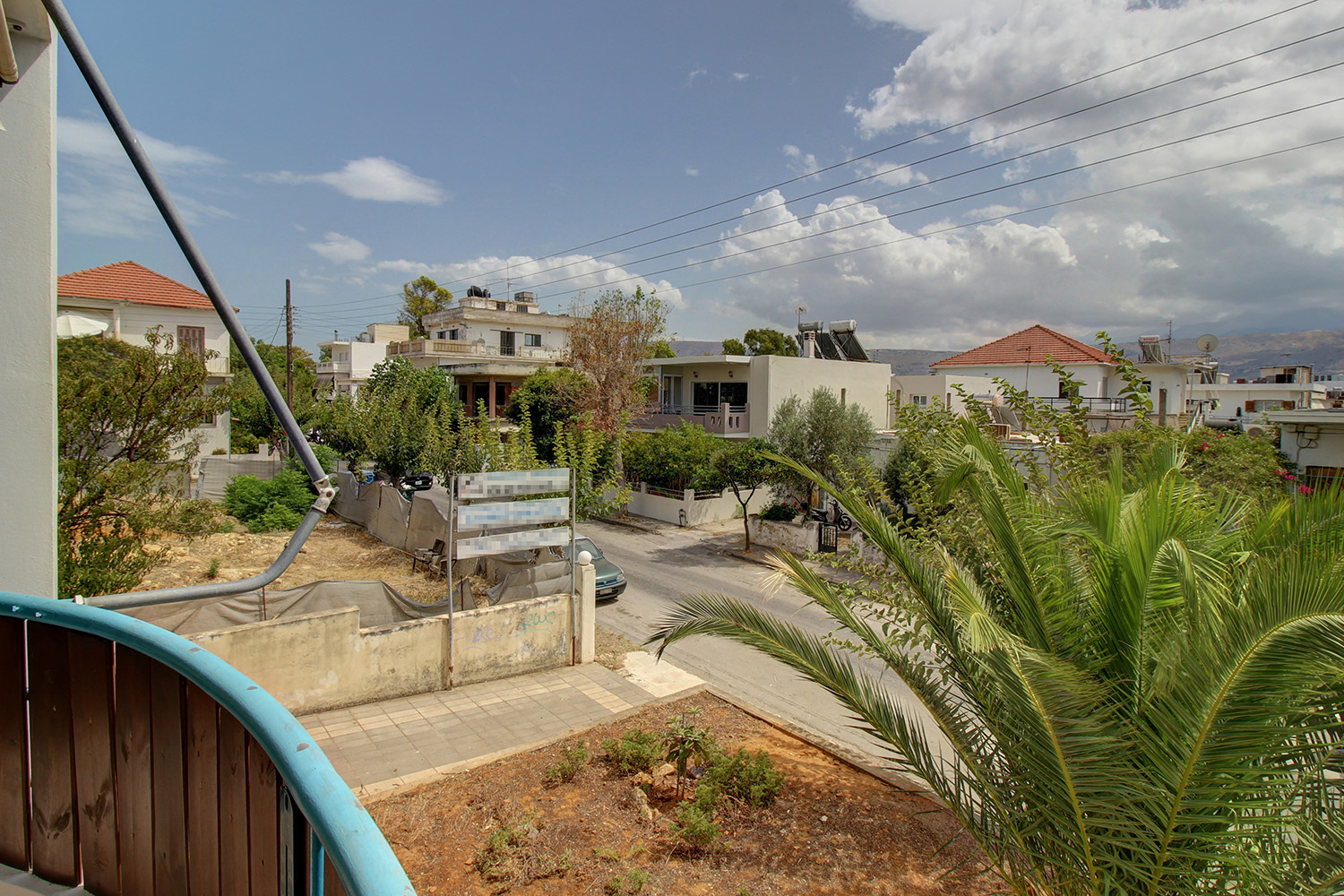 Το διαμέρισμα είναι στον πρώτο όροφο ενός κτηρίου με πιλοτή και επιπλέον 5 επάνω ορόφους, όπου βρίσκονται συνολικά 13 ιδιοκτησίες. Το κτήριο αδειοδοτήθηκε το 1996 και η κατασκευή του ολοκληρώθηκε το 1999. Καταλαμβάνει τη νοτιοδυτική γωνία του ορόφου και έχει μπαλκόνι στη δυτική πλευρά καθώς και μία άνετη στεγασμένη βεράντα στη νότια πλευρά, από όπου η θέα είναι εξαιρετική προς τα Λευκά Όρη.
