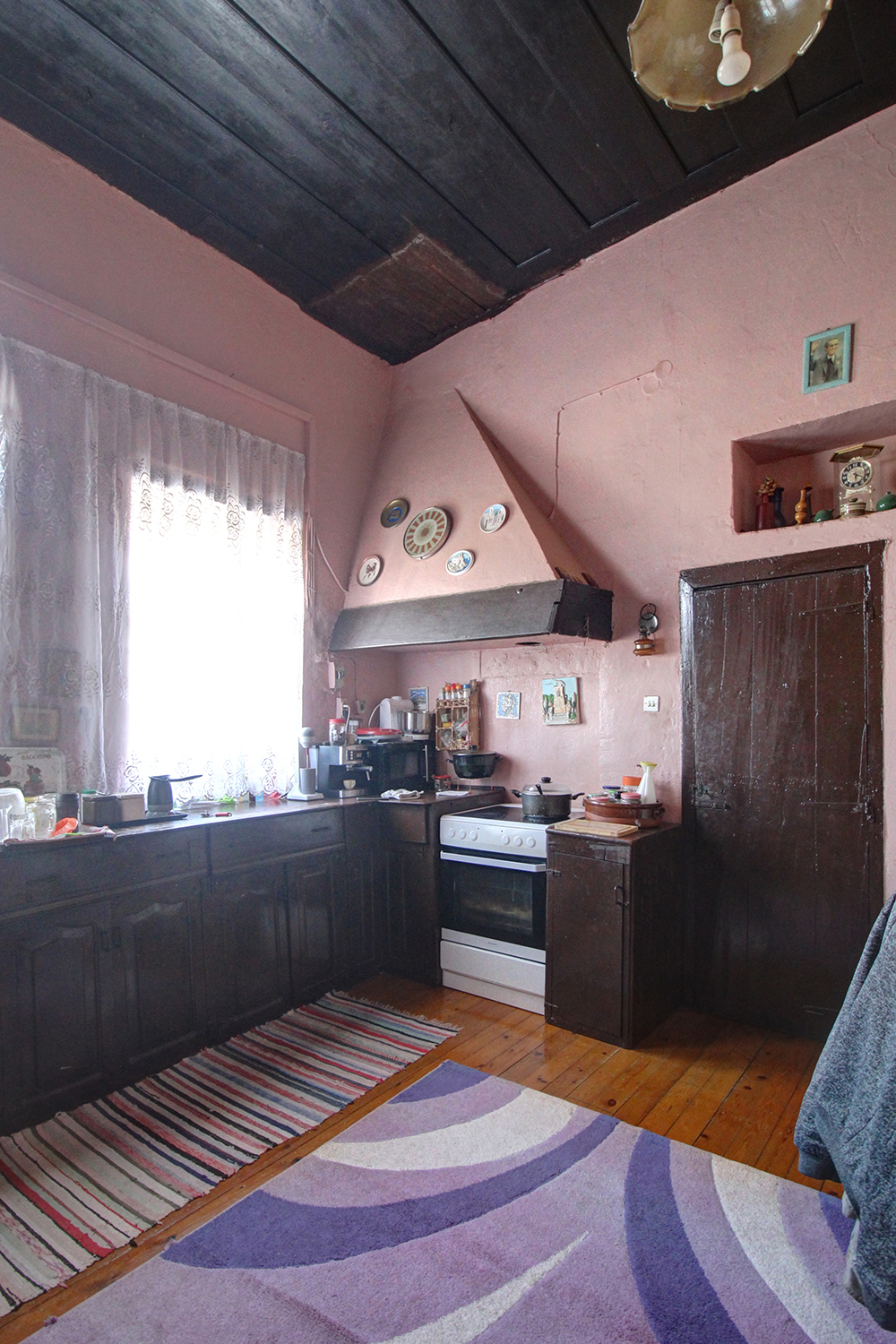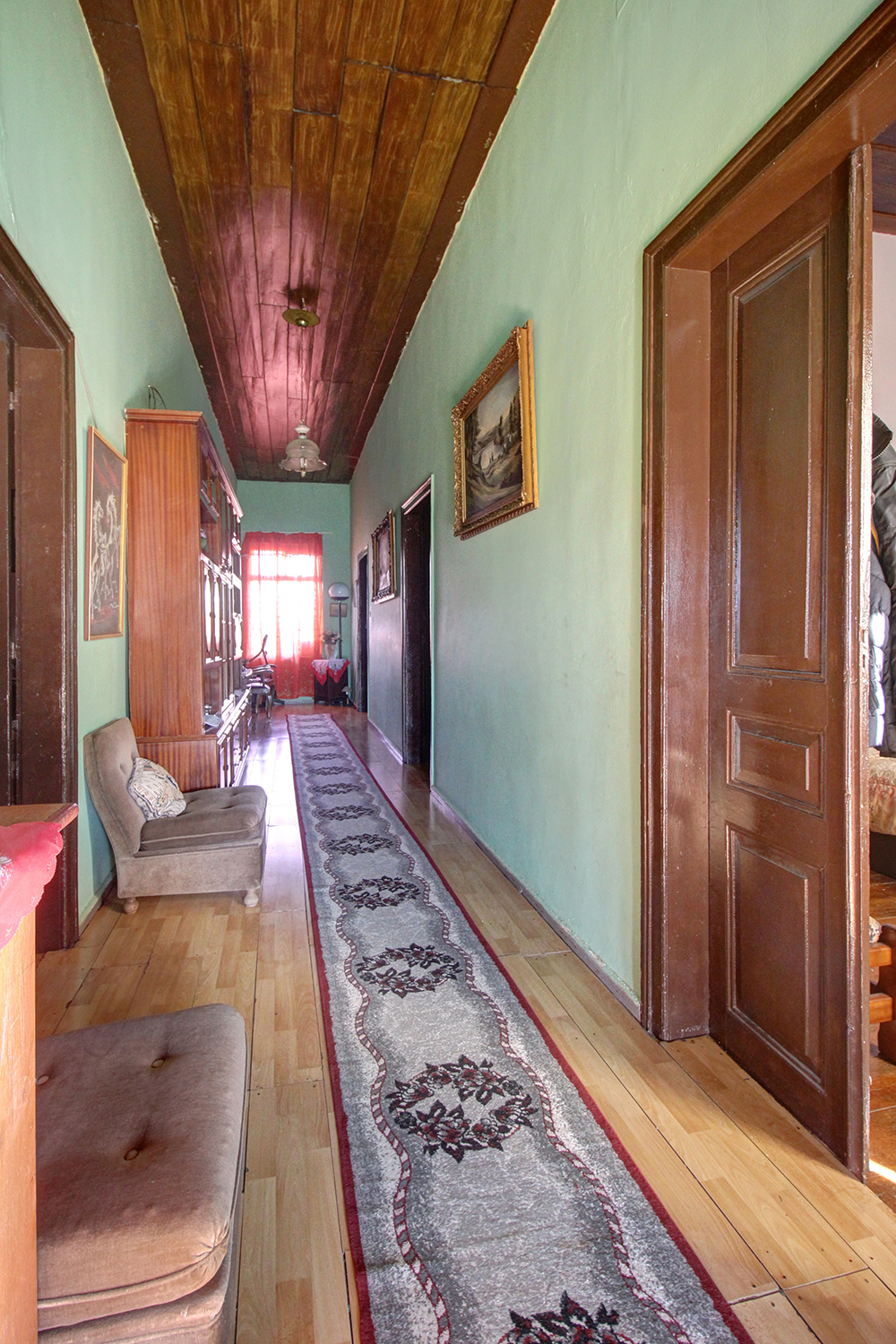 Το σπίτι είναι επιφάνειας 151 m² και επιδέχεται βελτιώσεων αλλά είναι άμεσα κατοικήσιμο. Στην πρόσοψή του υπάρχουν αυλή και μεγάλος κήπος ενώ πριν την κύρια είσοδο συναντάμε μία στεγασμένη βεράντα με όμορφη θέα επάνω από τα Χανιά. Οι χώροι εσωτερικά έχουν επιβλητικά ψηλά ξύλινα ταβάνια και η διαρρύθμιση ακολουθεί την παραδοσιακή αρχιτεκτονική των αστικών αρχοντικών, στην οποία ένας κεντρικός διάδρομος επικοινωνεί με όλους τους χώρους. Η κατοικία περιλαμβάνει τρία ανεξάρτητα υπνοδωμάτια, σαλόνι, ξεχωριστή κουζίνα και μπάνιο. Στον επάνω όροφο βρίσκεται, επίσης, ο μεγάλος κύριος χώρος του πρώην ελαιουργείου που έχει πρόσβαση στον δρόμο της πρόσοψης. Το κάτω επίπεδο περιλαμβάνει στο σύνολό του βοηθητικούς χώρους, οι οποίοι είναι επάνω από το επίπεδο του φυσικού εδάφους από τρεις πλευρές και αρκετά φωτεινοί.