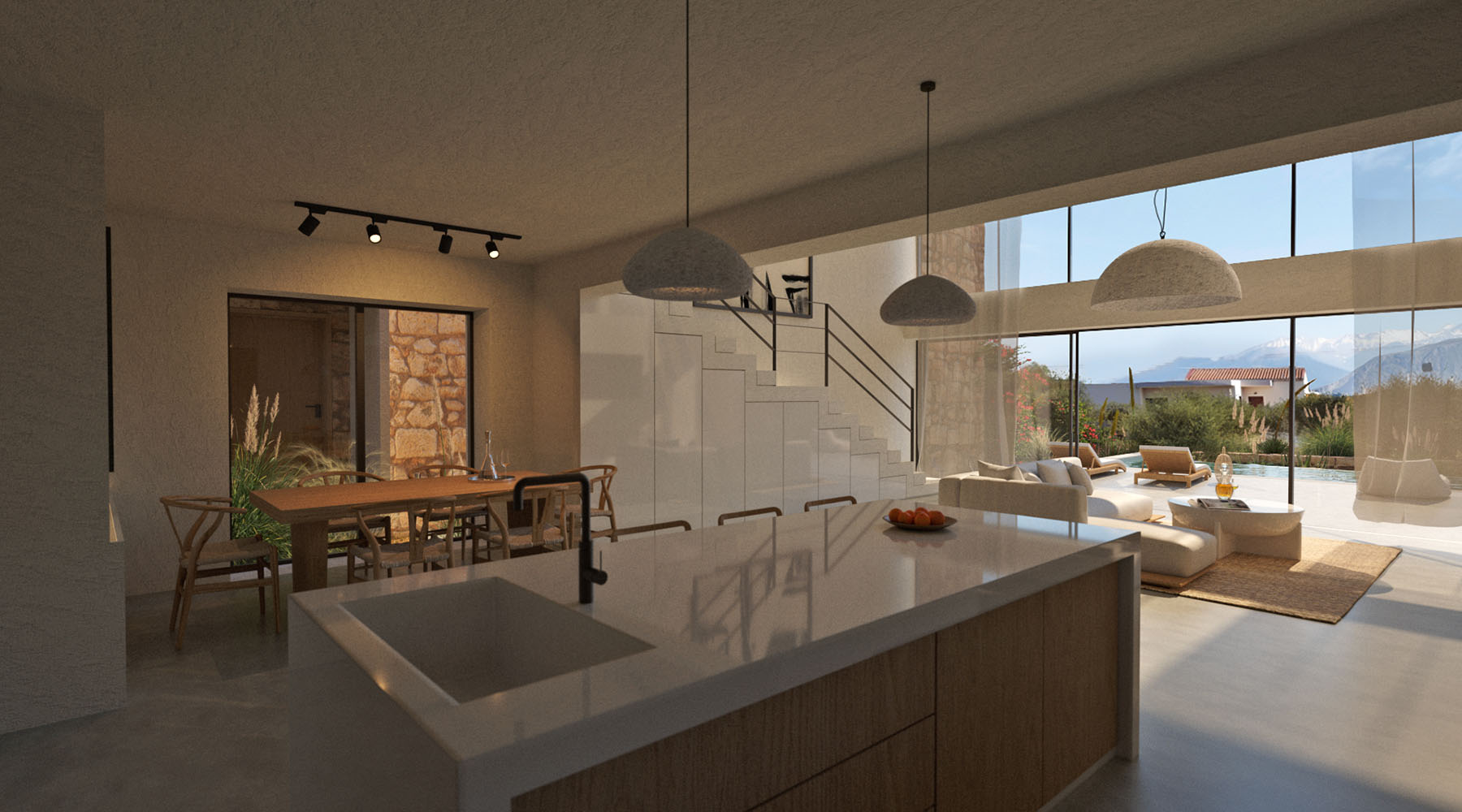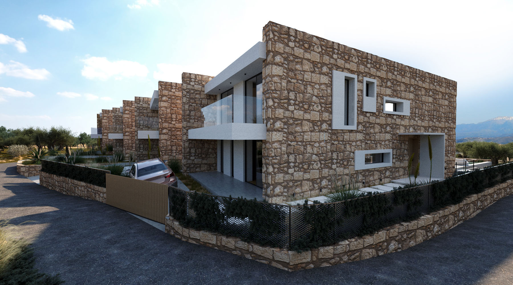 Οι κατοικίες σχεδιάστηκαν και θα κατασκευαστούν από την Zeropixel Architects, ένα επώνυμο αρχιτεκτονικό γραφείο, ώστε η λειτουργικότητα και το τελικό αποτέλεσμα να είναι υψηλής ποιότητας και αισθητικής. Η κατασκευή θα γίνει από πέτρα της περιοχής σε συνδυασμό με χρήση οπλισμένου σκυροδέματος, ώστε να μπορούμε να έχουμε μεγάλα ανοίγματα. Οι αποστάσεις μεταξύ των κτιρίων και η προσεκτικά επιλεγμένη φύτευση εντείνουν την ιδιωτικότητα της κάθε κατοικίας καθώς μπλοκάρουν ορατότητα και ήχο στο έπακρο. Η θερμομόνωση των κτηρίων είναι τοποθετημένη εσωτερικά, τόσο στις τοιχοποιίες όσο και στην οροφή ώστε να επιτυγχάνονται το βέλτιστο αποτέλεσμα και διαπνοή. Υπάρχει ολοκληρωμένο σύστημα υγρομόνωσης στην θεμελίωση και στον σκελετό πριν την δημιουργία της λιθοδομής αλλά και εξωτερικά της τοιχοποιίας. Επιπλέον, η διαμπερότητα βορρά-νότου σε συνδυασμό με τα ανάλογα ανοίγματα, καθιστούν τα κτίρια βιοκλιματικά ενώ και οι προσεκτικά σχεδιασμένες θερμομονώσεις με την εξάλειψη θερμογεφυρών, σε συνδυασμό με την χρήση φωτοβολταϊκών, τα κατατάσσουν στην κατηγορία Α++ και εν μέρη παθητικά.