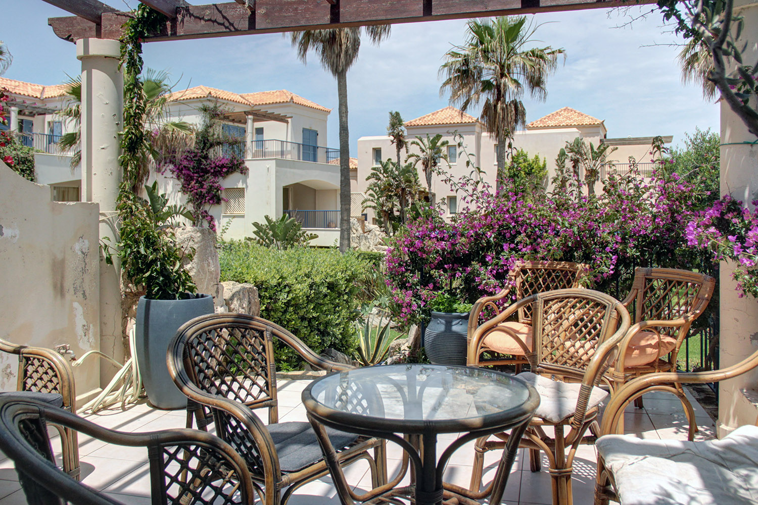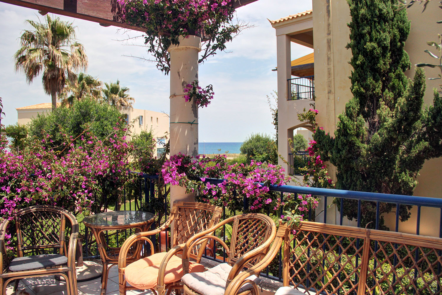 Το διαμέρισμα βρίσκεται σε ένα πολυτελές, παραθαλάσσιο συγκρότημα, σε απόσταση περίπου 20 λεπτά οδήγησης δυτικά της πόλης των Χανίων. Το συγκρότημα βρίσκεται ακριβώς μπροστά στην ωραία παραλία του Πύργου Ψηλονέρου και έχει μεγάλους, κατάφυτους κήπους και μία καλαίσθητη, θεματική πισίνα εμβαδού 230 m². Η περιοχή είναι όμορφα διαμορφωμένη και κατά μήκος της παραλίας υπάρχουν παγκάκια καθώς και χώροι περιπάτου και πρασίνου. Η παραλία έχει σημεία με άμμο ή βότσαλα. Είναι αρκετά μεγάλη και προσφέρει επιλογές σε οργανωμένα ή πιο απομονωμένα τμήματα.