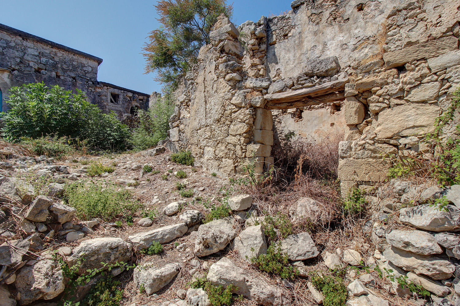 Το οικόπεδο του ακινήτου περιβάλλεται από ψηλό πετρότοιχο, ο οποίος περικλείει μία κεντρική αυλή με άριστη ιδιωτικότητα. Το κυρίως κτήριο βρίσκεται στο βάθος και καταλαμβάνει συνολικά 335 m² ενώ υπάρχουν και ερειπωμένα κτίσματα περίπου 140 m² επιπλέον, τα οποία έχετε τη δυνατότητα να επισκευάσετε. Το ακίνητο είναι προσανατολισμένο προς τη θάλασσα. Στη συνέχειά του υπάρχει ένα οικόπεδο επιπλέον 775 m² με 400 m² δυνατότητα οικιστικής δόμησης, το οποίο πωλείται προς € 80,000 και διασφαλίζει τη θέα σε οποιοδήποτε μελλοντικό ενδεχόμενο, εάν το αγοράσετε. Το ακίνητο είναι άριστο για επαγγελματική αξιοποίηση και, σε συνδυασμό με το απέναντι οικόπεδο, σας επιτρέπει να κατασκευάσετε μία ξενοδοχειακή μονάδα 30 ως 40 κλινών με ενδιαφέροντα ιστορικά και αρχιτεκτονικά στοιχεία.