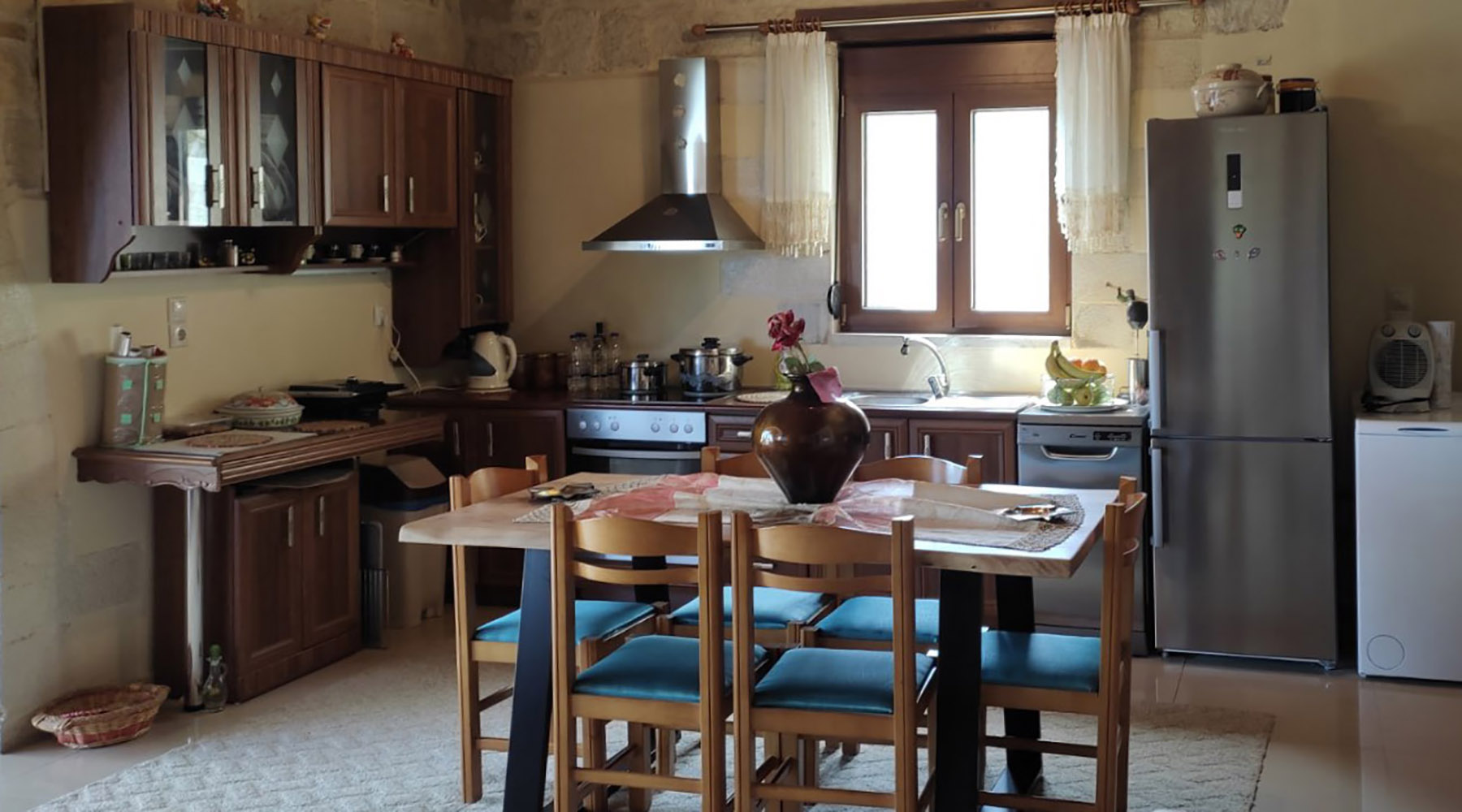Το κτήριο έχει κατασκευαστεί σε μία πλαγιά με βορειοανατολικό προσανατολισμό, από όπου προσφέρει πανοραμική θεά επάνω από το Τοπολιανό φαράγγι και μέχρι τη θάλασσα στο βάθος. Πρόκειται για ένα πέτρινο κτήριο, το οποίο έχει διαμορφωθεί με διαμέρισμα 82 m² στο ισόγειο καθώς και ένα ανεξάρτητο διαμέρισμα επάνω επιφάνειας 60 m² με επιπλέον πατάρι 48 m². Όλο το κτήριο μπορεί εύκολα να ενοποιηθεί σε μία μεγάλη μονοκατοικία. Ως έχει σας δίνει τη δυνατότητα να εκμισθώσετε το ένα ή και τα δύο διαμερίσματα προκειμένου να έχετε ένα καλό εισόδημα. Εναλλακτικά, μπορείτε να μείνετε στο ένα από τα επίπεδα και να φιλοξενείτε συγγενείς ή φίλους.
