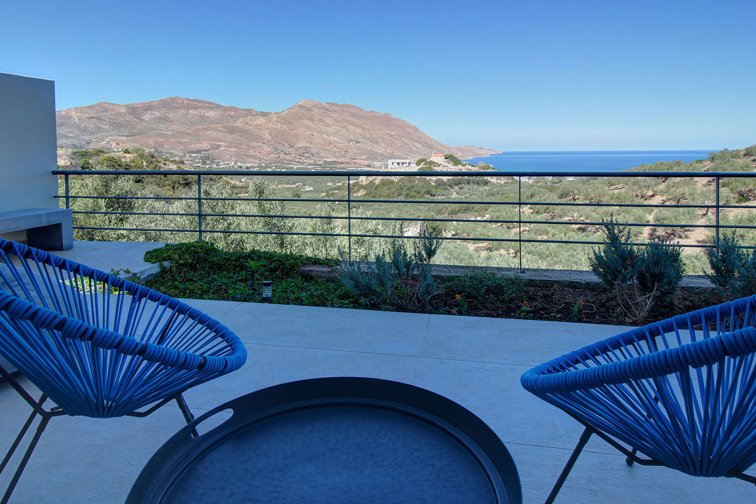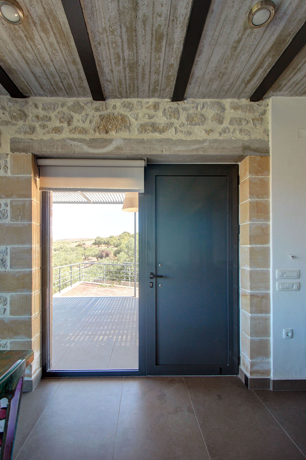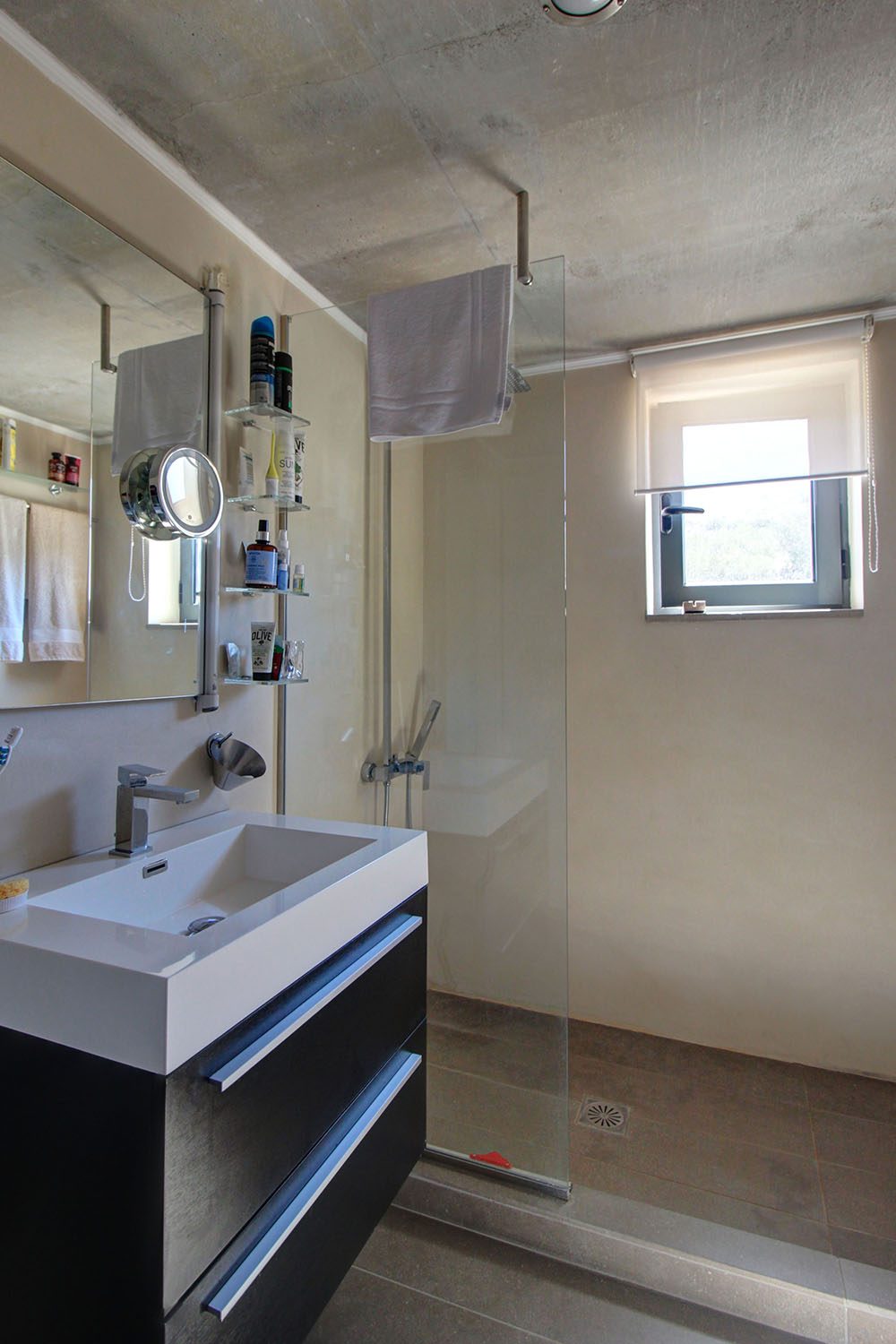 Η ιδιοκτησία είναι σε ένα συγκρότημα δύο πολυτελών κατοικιών, κάθε μία από τις οποίες έχει ένα μεγάλο οικόπεδο στην αποκλειστική της χρήση. Μοιράζονται μόνο έναν μεγάλο χώρο στάθμευσης 318 m² στην πρόσοψή τους. Το εν λόγω ακίνητο καταλαμβάνει το ανατολικό τμήμα και έχει εμβαδόν 1,023 m². Το κτήριο είναι σύγχρονο και έχει κατασκευαστεί με μεταλλικό σκελετό και τοίχους από τοπική πέτρα. Έχει μεγάλα ανοίγματα από όπου μπαίνει άπλετο φως καθώς και πολλά μοντέρνα στοιχεία, τα οποία δένουν άριστα με τα παραδοσιακά υλικά. Τα σπίτια είναι έξυπνα σχεδιασμένα ώστε να υπάρχει άριστη μεταξύ τους ιδιωτικότητα ενώ είναι προσανατολισμένα προς τη θάλασσα ώστε να απολαμβάνουν εντυπωσιακή θέα επάνω από τον ιδιωτικό τους ελαιώνα, στην κατάφυτη γύρω περιοχή και μέχρι τη θάλασσα στο βάθος.