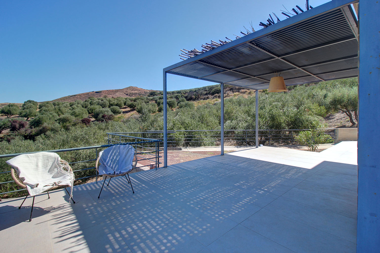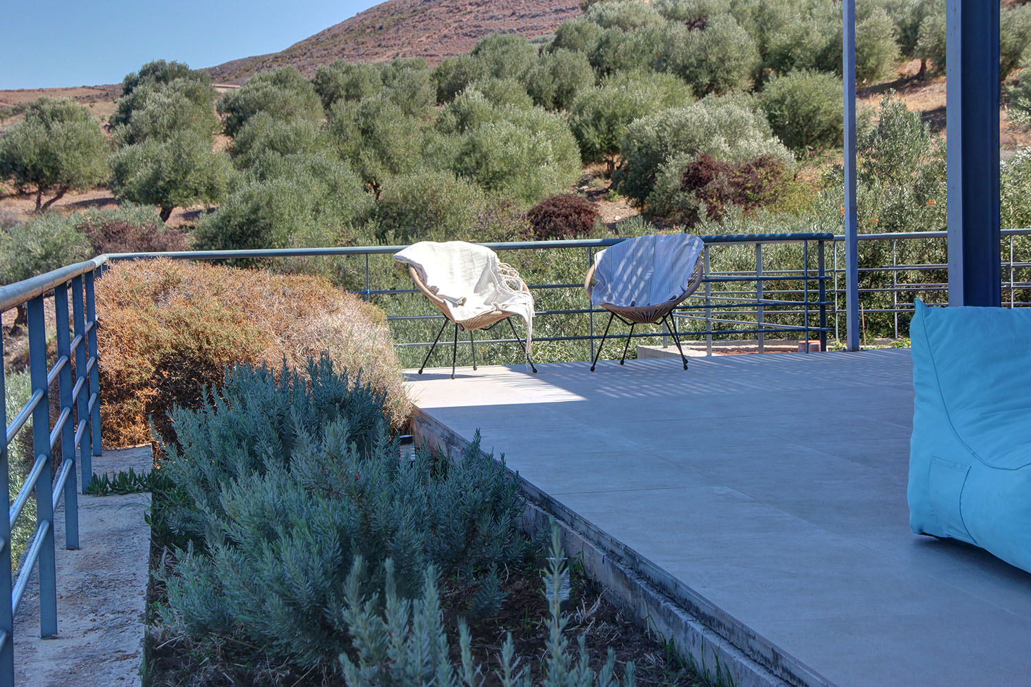 Γύρω από την κατοικία έχουν φτιαχτεί ανθόκηποι, παρτέρια και άνετες αυλές με επιλογές σε σκιά ή ήλιο όλες τις ώρες της ημέρας. Το σπίτι είναι σε δύο ορόφους συνολικής επιφάνειας 146 m² ενώ υπάρχει και πατάρι σε ένα επιπλέον επίπεδο 23 m². Πέραν αυτών, υπάρχουν δύο πρακτικές αποθήκες εξωτερικά του κτηρίου συνολικής επιφάνειας 16 m², όπου μπορείτε να αποθηκεύετε τα έπιπλα και τα εργαλεία του κήπου. Ένα μεγάλο μέρος του ελαιώνα που προϋπήρχε της κατασκευής του κτηρίου έχει παραμείνει στη θέση του. Ως εκ τούτου στη χαμηλότερη στάθμη υπάρχουν αυτή τη στιγμή 20 ώριμα και παραγωγικά ελαιόδεντρα, τα οποία υπεραρκούν για να καλύψουν τις ανάγκες σε ελαιόλαδο μίας μέσης οικογένειας. Ο εξωτερικός χώρος αρκεί για την κατασκευή πισίνας ή σε περίπτωση που θέλετε να επεκτείνετε τον κήπο.