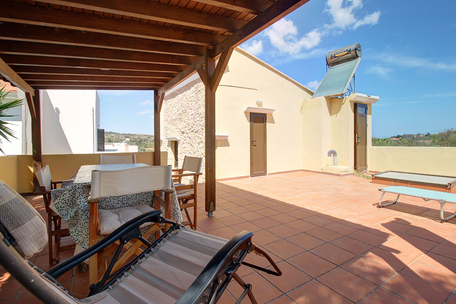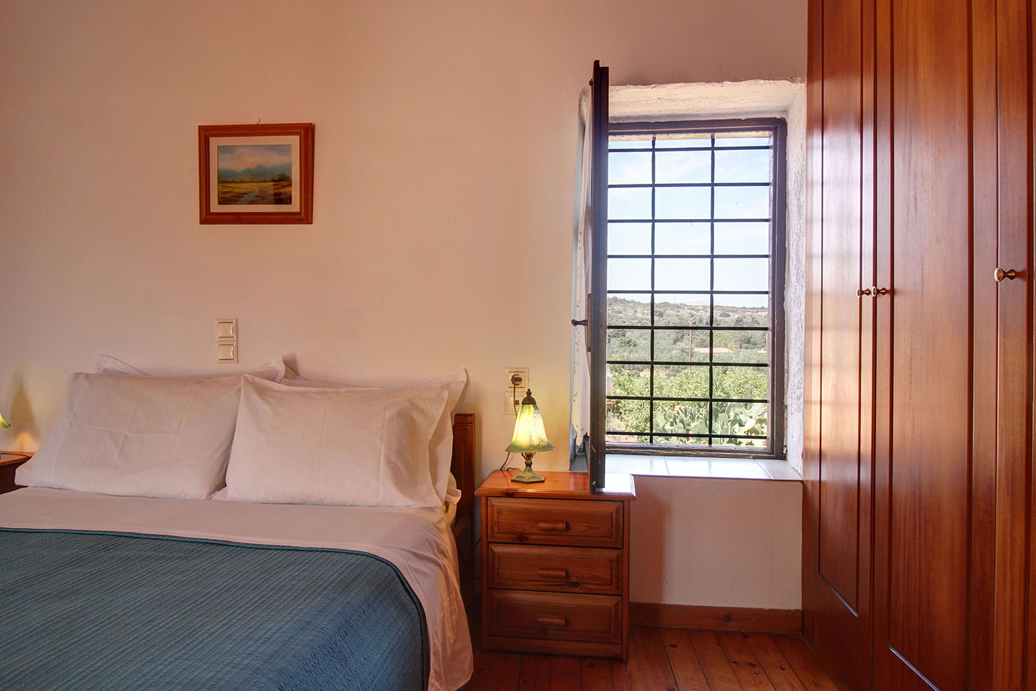 Το ακίνητο είναι προσανατολισμένο νοτιοδυτικά και σχεδόν από όλα τα σημεία, όπως και από όλη την αυλή υπάρχει όμορφη θέα προς τα Λευκά Όρη. Η κατοικία έχει γραμμές κεντρικής θέρμανσης, καθώς και ηλιακό θερμοσίφωνα. Στην τιμή πώλησης συμπεριλαμβάνονται όλη η υφιστάμενη επίπλωση και οι ηλεκτρικές συσκευές.