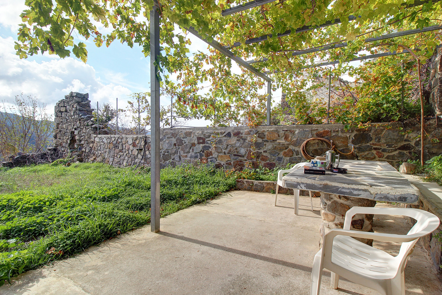 Η κατοικία είναι σε δύο επίπεδα συνολικής επιφάνειας περίπου 135 m². Το έδαφος έχει φυσική νοτιοανατολική κλίση. Το καλντερίμι φτάνει στην υψηλότερη στάθμη και δίνει πρόσβαση απευθείας στον επάνω όροφο. Η χαμηλότερη πλευρά του σπιτιού είναι επίσης ισόγεια, με σχεδόν το σύνολο του οικοπέδου να έχει διαμορφωθεί ώστε να είναι επίπεδο και εύχρηστο. Γύρω από την οικία υπάρχουν αυλές όπου μπορείτε να χαλαρώσετε υπό σκιά ή στον ήλιο, ενώ παραμένει άπλετος ανεκμετάλλευτος χώρος όπου μπορείτε να φτιάξετε έναν όμορφο ανθόκηπο, μποστάνι, πισίνα, ή οτιδήποτε άλλο εξυπηρετεί τις προσωπικές σας ανάγκες. Πέραν του σπιτιού, θα βρείτε δύο επιπλέον κτίρια τα οποία χρειάζονται επισκευή. Και στα δύο υπάρχει η δυνατότητα άμεσης επισκευής για κύρια οικιστική χρήση, ώστε να μπορούν να διαμορφωθούν σαν ξενώνες ή ανεξάρτητες οικίες. Εναλλακτικά, μπορούν απλά να επισκευαστούν ως αποθήκες με ένα σχετικά χαμηλό κόστος. Κάθε ένα είναι σε δύο επίπεδα, με 22 m² ανά όροφο στο ένα και 38 m² ανά όροφο στο δεύτερο. Κάθε κτήριο μπορεί να γίνει μία πλήρης αυτόνομη κατοικία, ή μπορούν να φτιαχτούν ως και 4 μικρότερα διαμερίσματα-ξενώνες.