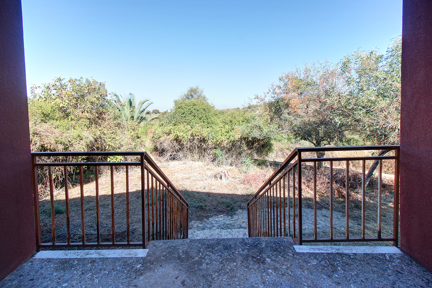 Το οικόπεδο αποτελεί σημαντικό πλεονέκτημα του ακινήτου. Οι όροι δόμησης του οικισμού σας επιτρέπουν να επεκτείνετε το υπάρχον κτήριο ή ακόμα και να φτιάξετε ένα μικρό οικιστικό συγκρότημα συνολικής επιφάνειας ως και 400 m². Η κατοικία είναι τοποθετημένη κοντά στην πρόσοψη, αφήνοντας άπλετο ελεύθερο χώρο στην πίσω όψη, όπου μπορείτε να προσθέσετε ένα ή περισσότερα ανεξάρτητα κτήρια. Το έδαφος έχει βορειοανατολική κλίση, ήπια αλλά και αρκετή ώστε αν τοποθετηθεί μία κατοικία στο βάθος τότε η ήδη υπάρχουσα να μην της κόβει τη θέα. Από όλα τα σημεία του φυσικού εδάφους η θέα είναι όμορφη και πανοραμική επάνω από τους αμέτρητους ελαιώνες της περιοχής.