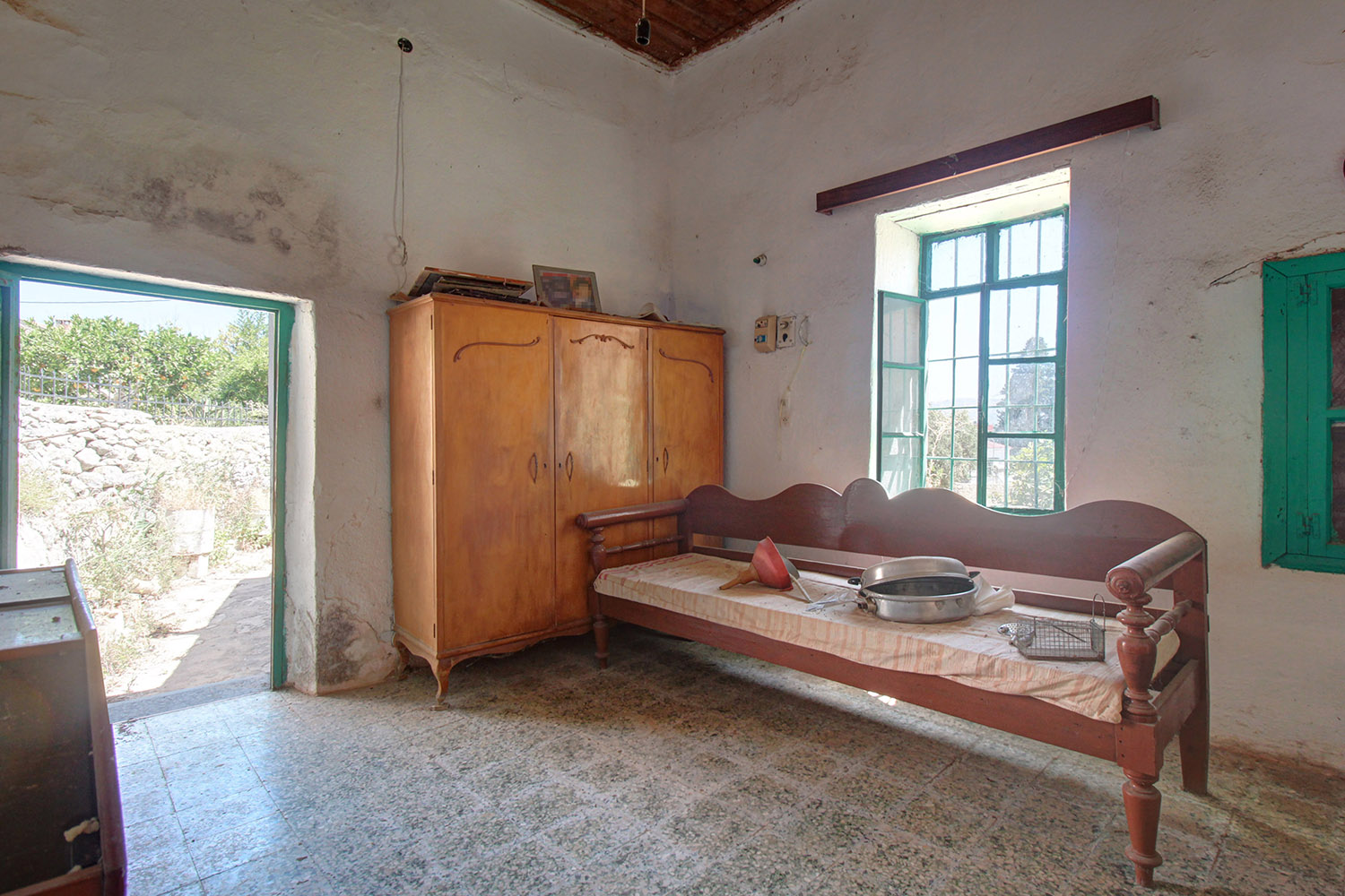 Η ιδιοκτησία βρίσκεται σε μία από τις διάσπαρτες γειτονιές της κωμόπολης του Βάμου, περίπου 800 m από το κέντρο του. Είναι μία παλαιά ισόγεια κατοικία, η οποία χρειάζεται επισκευή. Στην πρόσοψη του οικοπέδου υπάρχει ένα παλιό παραδοσιακό χαγιάτι ενώ στο βάθος υπάρχει ένα κτίσμα 76 m², το οποίο μπορεί να γίνει μία άνετη κατοικία δύο υπνοδωματίων. Αυτή τη στιγμή υπάρχουν τρεις χώροι στη σειρά που επικοινωνούν ο κάθε ένας μεμονωμένα με την αυλή ενώ μαζί με το χαγιάτι σχηματίζεται ένα "Π" που περικλείει μία εσωτερική αυλή.