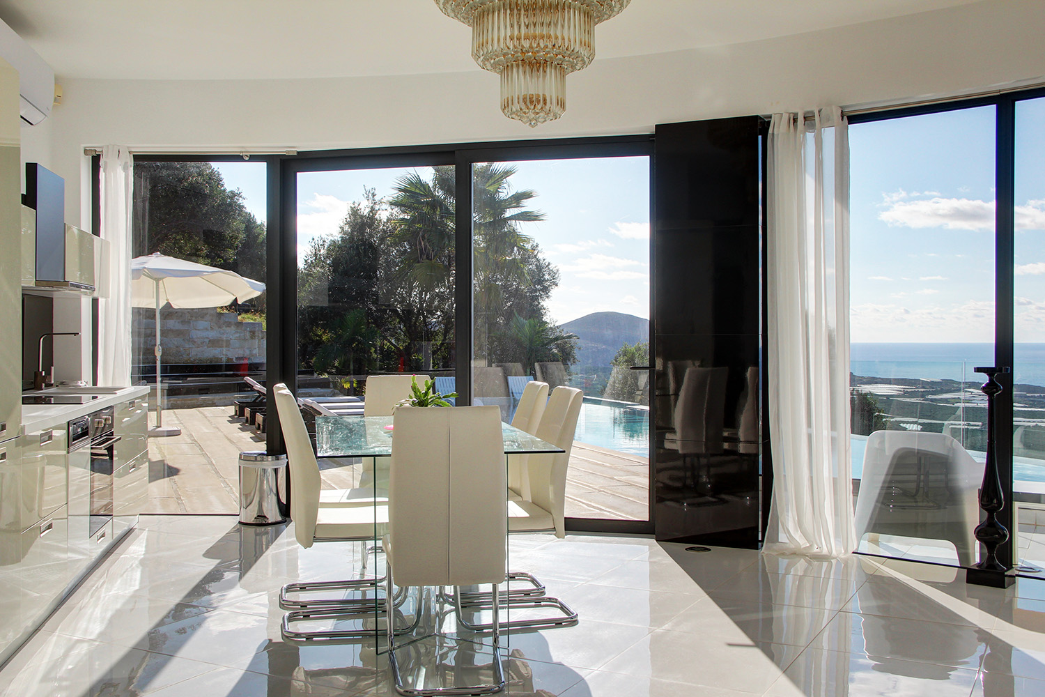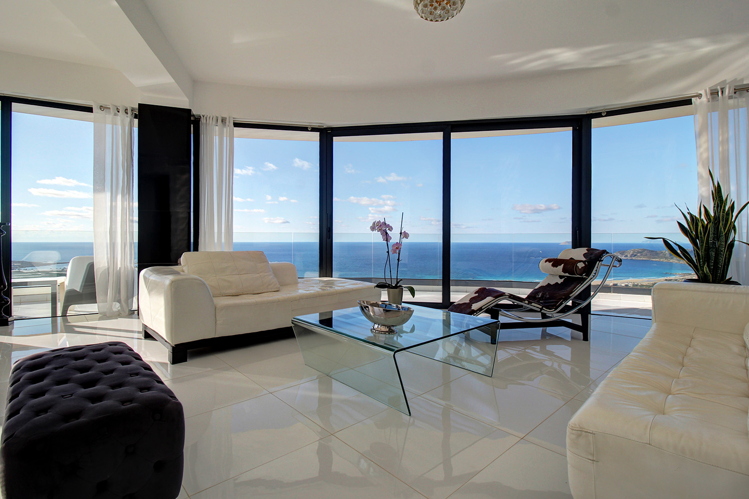 Το ακίνητο είναι σε μία πλαγιά με υψηλή οικιστική ζήτηση, από όπου κοιτά ανεμπόδιστα επάνω από τα φημισμένα Φαλάσαρνα και από τον ομώνυμο κολπίσκο με τους αμέτρητους ελαιώνες της περιοχής. Η κατοικία περιβάλλεται από υπερπολυτελείς βίλες. Το σημείο επιτρέπει την εύκολη πρόσβαση στη διεθνώς γνωστή κοντινή παραλία ενώ κοιτά δυτικά και έτσι μπορείτε να απολαμβάνετε ένα εντυπωσιακό ηλιοβασίλεμα με τον ήλιο να χάνεται μέσα στη θάλασσα στο τέλος κάθε ημέρας.