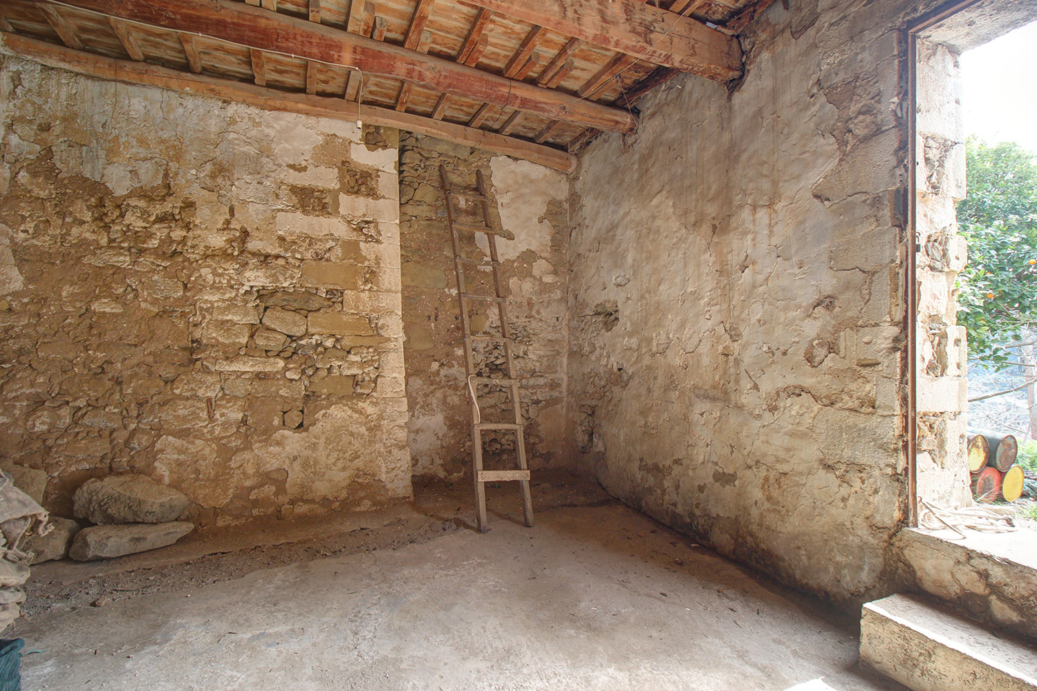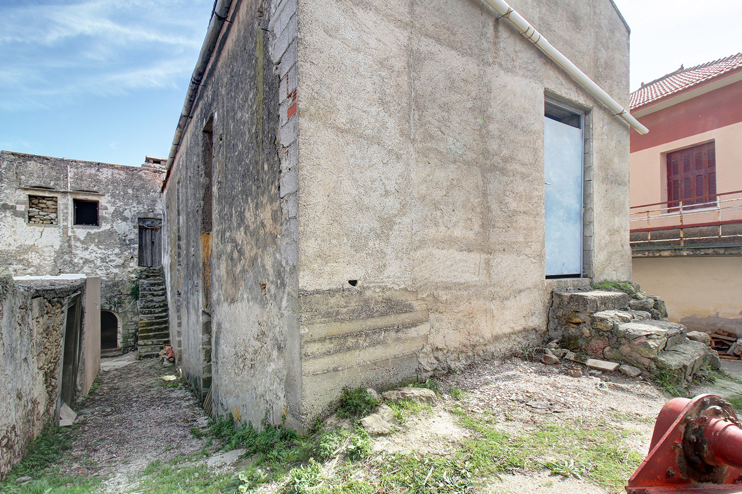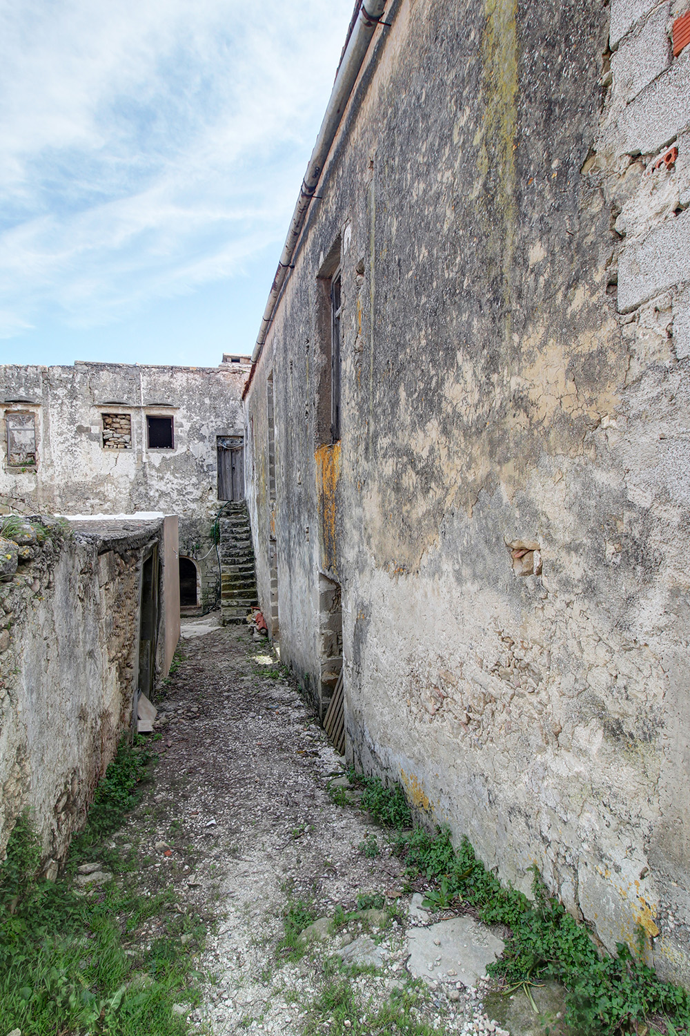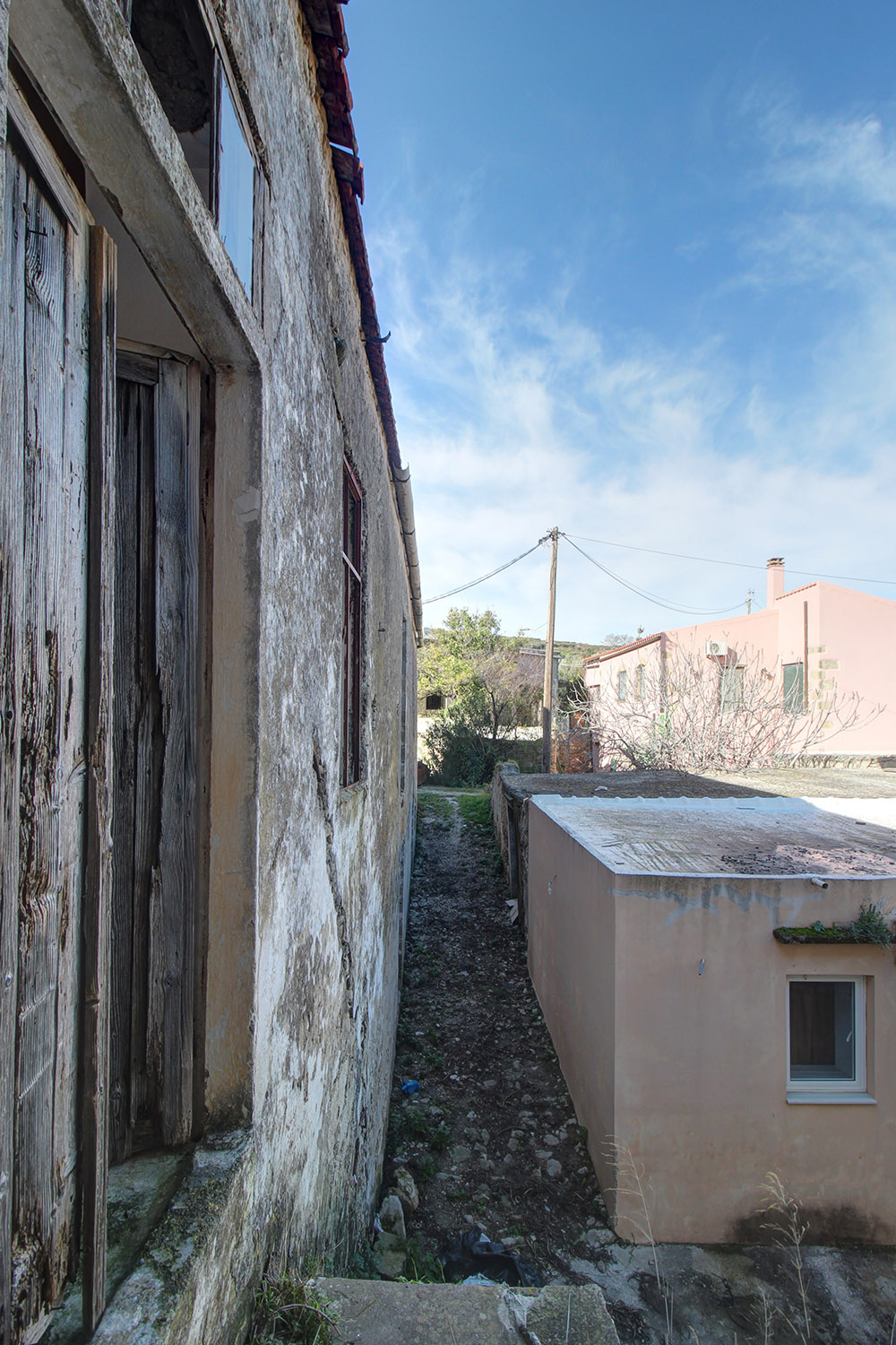 Το κτίσμα έχει δύο κύριες όψεις που κοιτούν νότια και ανατολικά ενώ σε συνέχειά του υπάρχει αρκετός χώρος, όπου μπορούν να προστεθούν άνετος κήπος, χώροι στάθμευσης ή πισίνα. Κατά μήκος της πρόσοψης του οικοπέδου υπάρχει ψηλό πρανές, το οποίο προσθέτει ιδιωτικότητα και διασφαλίζει όμορφη θέα στην κατάφυτη γύρω περιοχή ενώ υπάρχει και δεύτερη εναλλακτική πρόσβαση. Στον όροφο υπάρχει, επίσης, ένα άνετο ανατολικό μπαλκόνι που μεταξύ άλλων κοιτά στη θάλασσα και στον κόλπο της Κισσάμου στο βάθος. Το κτίσμα είναι πέτρινο στο σύνολό του. Είναι σε δύο επίπεδα και κατά καιρούς έχουν γίνει παρεμβάσεις σε διάφορα σημεία. Ως εκ τούτου ένα τμήμα να είναι πλακοσκεπές και ένα άλλο έχει κεραμίδια. Μεταξύ άλλων, στο εσωτερικό του ακινήτου υπάρχουν λίθινες γούρνες, θυρίδες στις τοιχοποιίες καθώς και μία εντυπωσιακή βενετσιάνικη κουζίνα με παρασιά στον επάνω όροφο.
