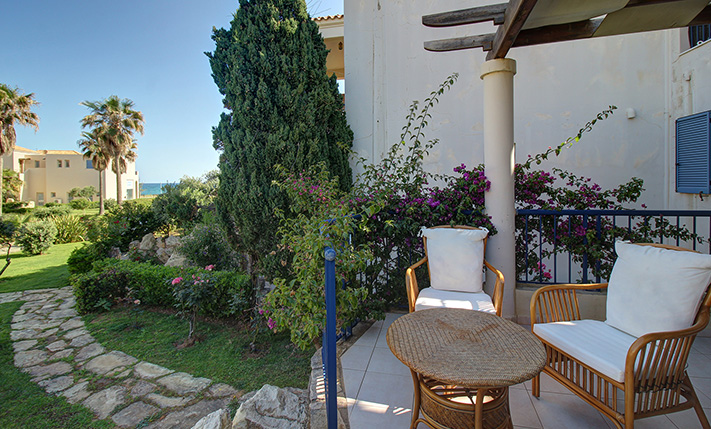 Το διαμέρισμα βρίσκεται σε ένα πολυτελές, παραθαλάσσιο συγκρότημα, σε απόσταση περίπου 20 λεπτά οδήγησης δυτικά της πόλης των Χανίων. Το συγκρότημα βρίσκεται ακριβώς μπροστά στην ωραία παραλία του Πύργου Ψηλονέρου και έχει μεγάλους, κατάφυτους κήπους και μία καλαίσθητη, θεματική πισίνα εμβαδού 230 m². Η περιοχή είναι όμορφα πολεοδομημένη και κατά μήκος της παραλίας υπάρχουν παγκάκια καθώς και χώροι περιπάτου και πρασίνου. Η παραλία έχει σημεία με άμμο ή βότσαλα. Είναι αρκετά μεγάλη και προσφέρει επιλογές σε οργανωμένα ή πιο απομονωμένα τμήματα.