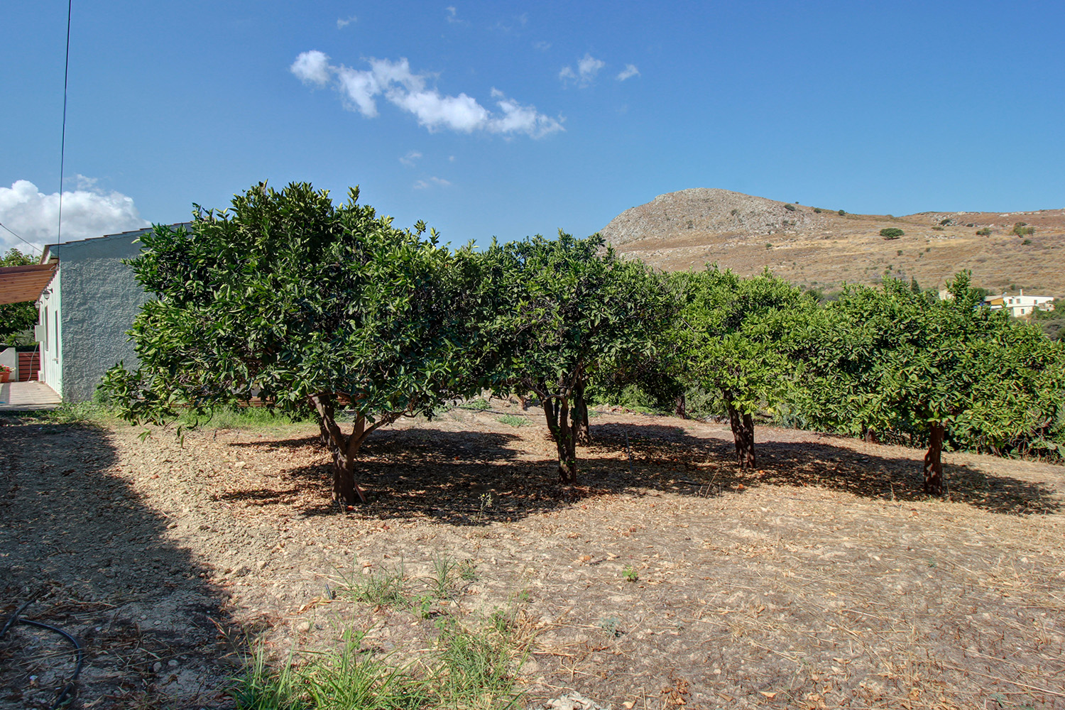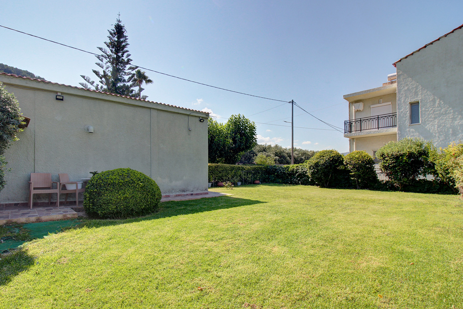 Το οικόπεδο του σπιτιού είναι άνετο και σας δίνει τη δυνατότητα να επεκτείνετε το υφιστάμενο κτίσμα σε ως και 400 m² χώρων κύριας οικιστικής χρήσης. Στην πρόσοψη υπάρχει χώρος στάθμευσης για δύο οχήματα, ο οποίος μπορεί πολύ εύκολα να επεκταθεί. Πριν την είσοδο του σπιτιού υπάρχει μία άνετη αυλή ενώ στην πίσω όψη υπάρχει ένας μεγάλος κήπος με γρασίδι, όπου μπορείτε να κατασκευάσετε πισίνα ή για να φτιάξετε έναν όμορφο θεματικό κήπο. Ένα τμήμα που καλύπτει σχεδόν στη μισή επιφάνεια του οικοπέδου δεν έχει διαμορφωθεί και υπάρχουν 5 ώριμες πορτοκαλιές με εξαιρετικά νόστιμα φρούτα.